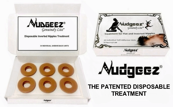 NUDGEEZ® is a unique non-invasive product developed by Genuinely Lite for correcting flat and inverted nipples. Our company's founder and product developer was born with this condition. So, we understand the challenges and emotions often associated with inverted nipples. Our non-surgical treatment is based on an innovative patented method that does not rely on the traditional use of pumps, syringes, suction or vacuum. We offer a user-friendly disposable solution for correcting flat and inverted nipples, eliminating the need for maintenance or time consuming steps. Our method is as simple as, "PEEL, CENTER & APPLY". Each NUDGEEZ® package includes 30 individual self-adhesive units which can be worn discreetly beneath clothing and will remain securely in place, even while exercising or sleeping. Only medical-grade non-latex materials are used in the manufacturing of this product.